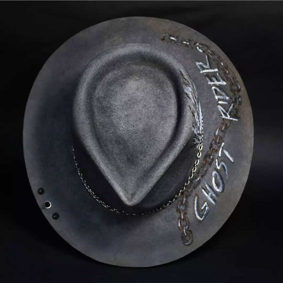 Для самого преданного фаната Джонни Блейза мы создали эту шляпу. Темно-серая Fedora Jack с обжигом, потёртостями, рисунком и надписью Ghost Rider #fedora #jack #7см #тёмно-серый