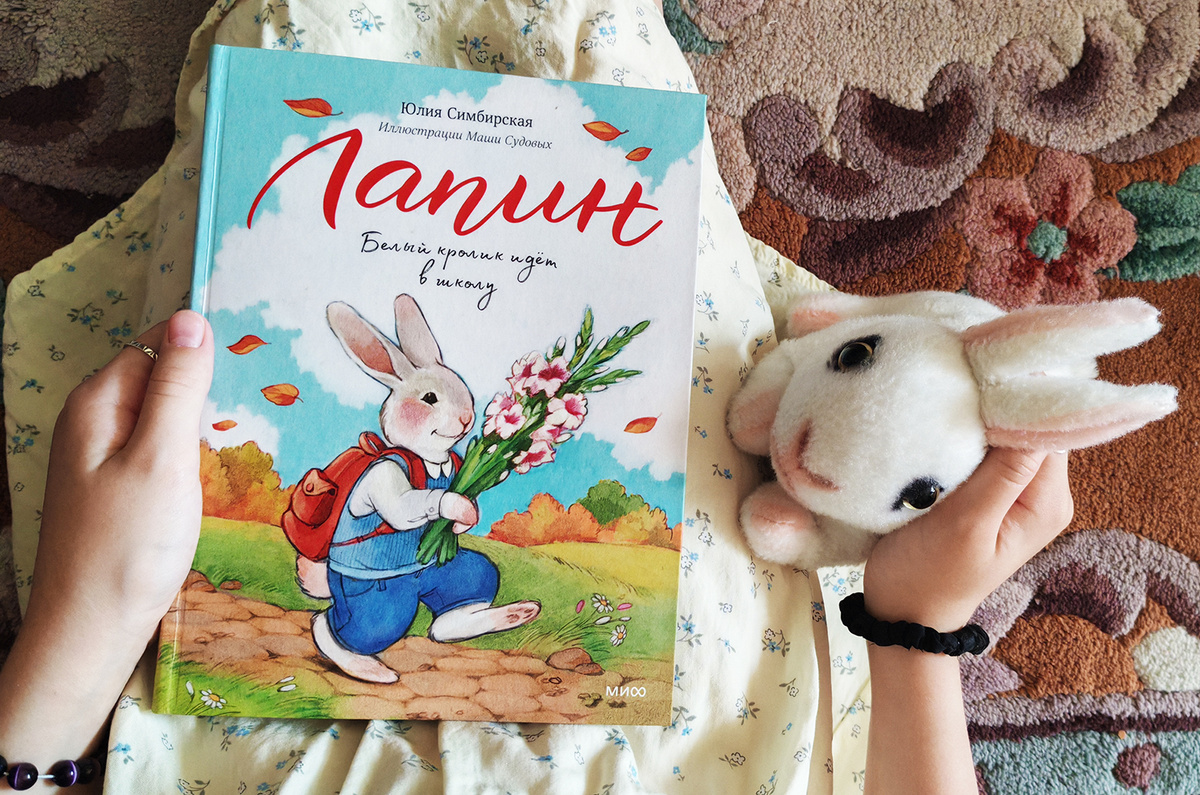 Кролик Лапин из книги Юлии Симбирской «Лапин. Белый кролик идет в школу» с иллюстрациями Маши Судовых, вышедшей в издательстве МИФ, очень ждал этого дня. В нашей библиотеке уже третья книга про этого милого Кролика и, наверно, десятая Юлии Симбирской. Нам с дочкой нравятся книги этого автора: добрые, спокойные и атмосферные. Правда, моя дочка растет быстрее, чем выходят книги про кролика. Если Лапин в этом году пошел в первый класс, то моя дочка в третий. И к сожалению, 1 сентября ее не радовало, в школу она не хотела. По моим ощущениям, дочка переросла эту книгу, она по возрасту больше подойдет дошкольника: от 3-ех до 7-ми лет, как раз для тех, кто пойдет в школу. Забавно, моя дочка шла в школу как раз с белым кроликом в качестве игрушки, он ее успокаивал. Собственно, все истории, а их десять про подготовку к школе. Конечно, детки переживают перед таким событием. Задача книги снять у ребенка напряжение, показать, что переживать — нормально, а заодно проверить, все ли необходимое закуп