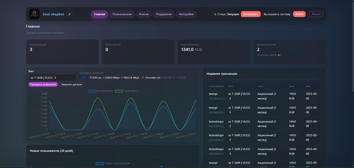 Сегодня всё больше пользователей выбирают VLESS как быстрый и безопасный протокол для работы в сети. Но продавать доступ к нему вручную — долго и неудобно. 3xui-ShopBot решает задачу полностью: бот принимает оплату, автоматически выдаёт VLESS-конфигурации, а администратор управляет процессом через веб-панель. Через панель можно: Для клиента всё предельно просто: Весь процесс — без ручного вмешательства администратора. Поддерживаются: 📩 Telegram: @tweopi