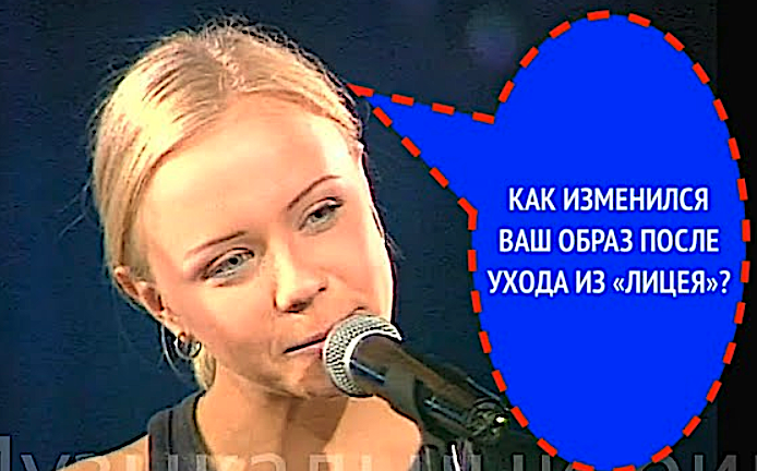 "У меня такой вопрос: В бытность вашей работы в 'Лицее' ваш образ был запоминающим, единым, таким цельным. Так вот, сейчас ваш образ поменялся, я так заметил, вы сменили старый, так вот скажите, пожалуйста, новый ваш образ, который вы хотите воплотить на ринге, на эстраде, каков он?" "Ну, во-первых, он таков, какой каким вы увидите сегодня, во-вторых, просто время меняется, и мы меняемся вместе с ним, и поэтому мне кажется вполне логичным, что как бы вы примете, да, с 16 лет там до 23 происходит основное становление, правильно, человека, поэтому в общем неудивительно, что так всё изменилось, я не знаю, как будет дальше меняться это, но посмотрим, всё органично, всё как есть." Зритель отмечает смену образа с времён "Лицея" и просит описать новый. Перовa отвечает, что образ "таков, какой вы увидите сегодня", что звучит как приглашение к восприятию, а не уклон. Она признаёт перемены, связывая их с возрастом (16–23 года), что логично и отражает её опыт, добавляя честности. Фраза "время ме
