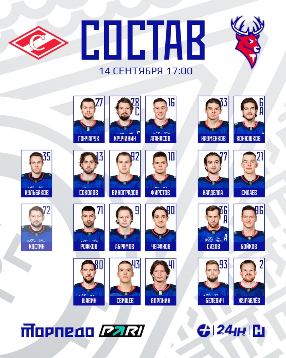 Тренерский штаб «Торпедо» определил состав на первый выездной матч сезона! 👏 Прямые трансляции: 📺 НН 24, ННТВ 💻 https://hd.kinopoisk.ru/sport/event/m729443/
