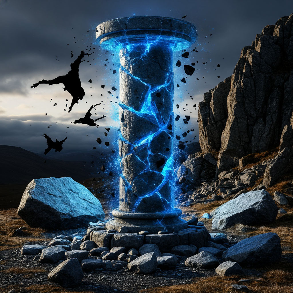 Колонна истины изменила цвет. Она стала насыщеннее, а теней, которые летели в нее, стало гораздо меньше. Если сначала вокруг столба кружили стаи, то сейчас лишь иногда одинокая черная тень лентой влетала в этот магический портал. Вокруг колонны лежали огромные валуны и куча камней - все, что осталось от марониевой скалы, где был вход в подземелье. Пройдя между большими камнями, мятежники вплотную приблизились к магическому столбу. Он висел над нами яркой колонной, но совсем не слепил, его свет был спокойным, но подвижным, как будто вода в водопаде.