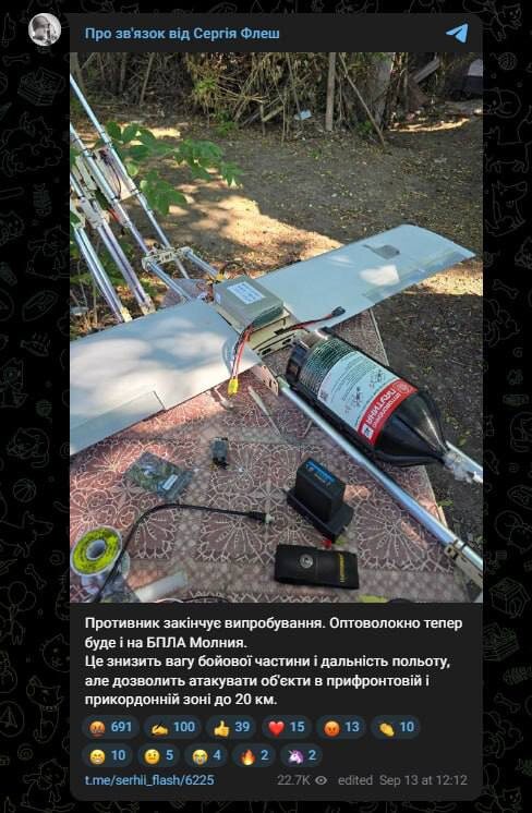 На вооружении РФ появились оптоволоконные БПЛА "Молния", модели "Молния-2".