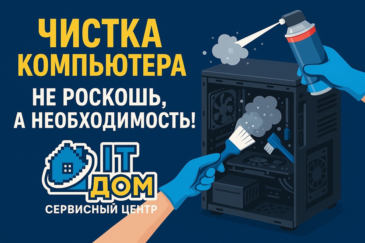 Вы замечали, что ваш компьютер стал работать медленнее, шуметь или самопроизвольно выключаться? 🤔 Возможно, пришло время почистить его от пыли и заменить термопасту! 🔧 Пыль — главный враг систем охлаждения. Она ухудшает вентиляцию, перегревает процессор и видеокарту. 💥 Перегрев приводит к снижению производительности и даже к поломкам. ⏳ Регулярная чистка продлевает срок службы вашего ПК или ноутбука. 📍 Сервисный центр IT-ДОМ по ремонту компьютеров предлагает профессиональную чистку от пыли, замену термопасты и диагностику всего устройства. ✅ Быстро ✅ Качественно ✅ С гарантией 📆 Рекомендуем делать чистку раз в 6–12 месяцев. 💬 Запишитесь прямо сейчас в сообщения группы или по телефону: +79968345126 🔎Следите за нами в социальных сетях: Telegram: ссылка VK: ссылка 📞Тел. +7 996 834 51 26 Евгений (Whats App) 🕓 Работаем ежедневно! Не дожидайтесь перегрева — доверьте заботу о вашем устройстве профессионалам! 🔧💨