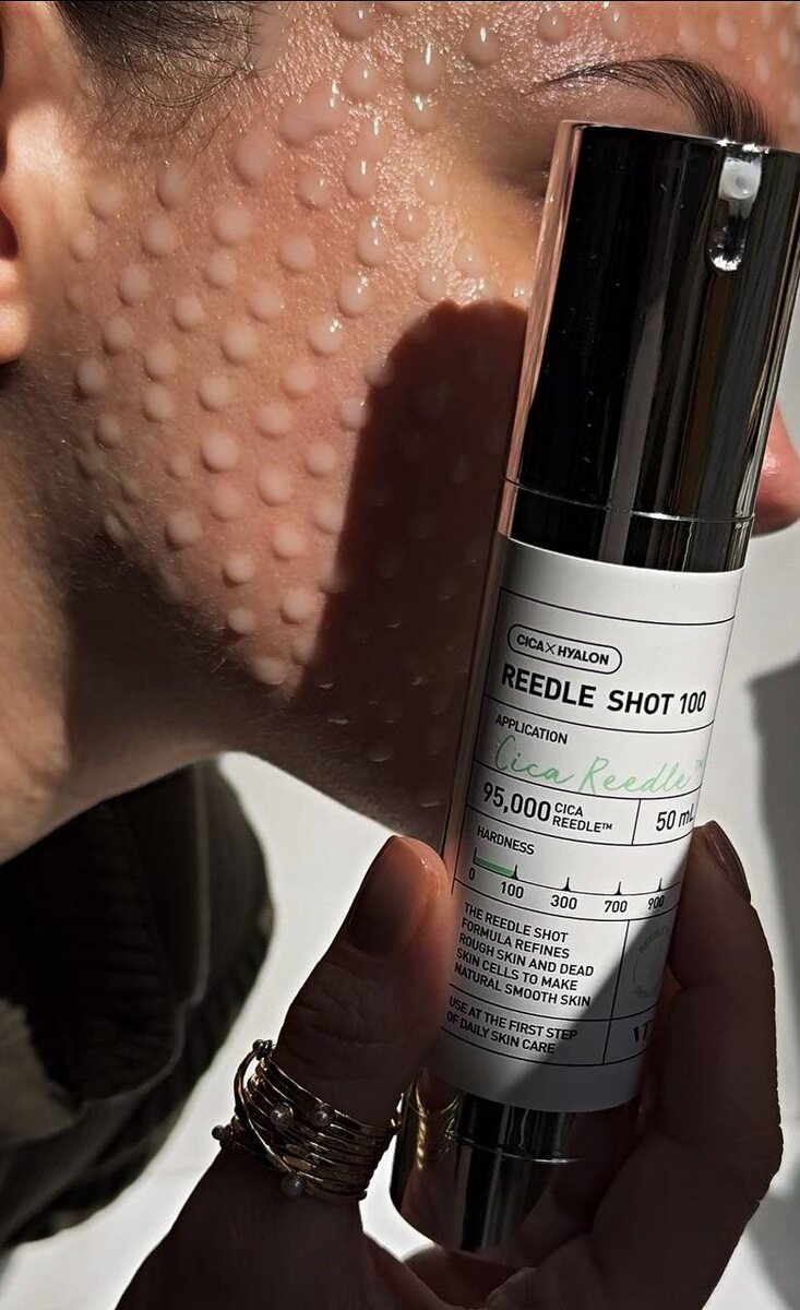 Шоты (Shot) от VT Reedle Shot — это, по задумке бренда, как-бы домашняя замена механическому микророллеру. Микророллер (дермароллер) — это ручной цилиндрический инструмент с множеством тонких игл (обычно 0,2–1,5 мм), который прокатывают по коже, создавая микроканалы. Он стимулирует выработку коллагена и усиливает проникновение косметических средств; его используют курсами с обязательной дезинфекцией и SPF. По сути, бренд VT совместил в одном флаконе продукт с активами и микророллер в виде микроиголок. В шотах используются микроиглы минерального происхождения, которые по форме напоминают микроспикулы. Но это не спикулы в чистом виде. Об этом напишу в следующем посте. Микроиглы сделаны из 99% минерального кремнезёма, в который закачивают экстракт центеллы по запатентованной технологии. Они примерно в 14 раз тоньше пор (≈15 мкм против ~220 мкм), поэтому мягко «будят» кожу в роговом слое и механически усиливают доставку активных веществ — это и даёт характерное покалывание после нане