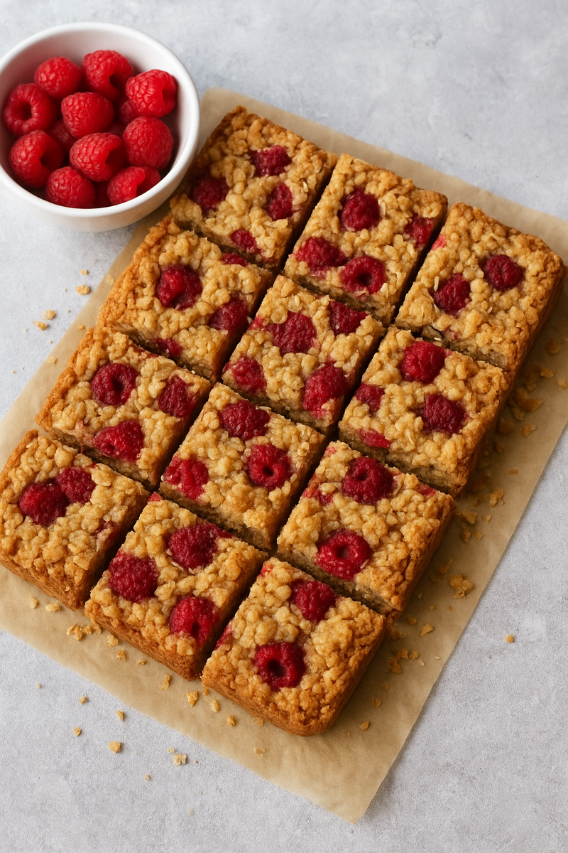 Если честно, я не знаю ничего более уютного, чем аромат свежей выпечки дома. Особенно, когда в духовке румянится вот это печенье с овсяными хлопьями и малиной. Оно получается мягким, с лёгкой хрустящей корочкой и сочной ягодной серединкой. Настоящая летняя магия в каждом кусочке! Заранее достаньте масло из холодильника — пусть оно станет мягким и нежным. Взбейте его с сахаром до пышности. Добавьте яйцо и снова перемешайте — на этом этапе кухня уже начинает пахнуть домашним уютом. Вмешайте муку, разрыхлитель, овсяные хлопья и щепотку соли. Получится мягкое, податливое тесто. Форму выстелите пергаментом и распределите 2/3 теста слоем около полсантиметра. Отправьте в духовку при 175° на 15 минут — это будет основа. Тем временем подготовьте ягоды: малину аккуратно перемешайте с сахаром и крахмалом. Крахмал поможет сохранить сок внутри, чтобы печенье получилось не мокрым, а сочным. На слегка подпёкшуюся основу выложите ягоды, а сверху — кусочки оставшегося теста. Пусть они ложатся хаотичн