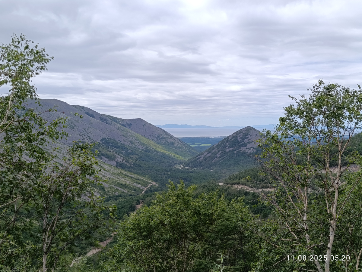 Большую часть пути тропа шла возле склона, и с неë открывались виды на Охотское море.