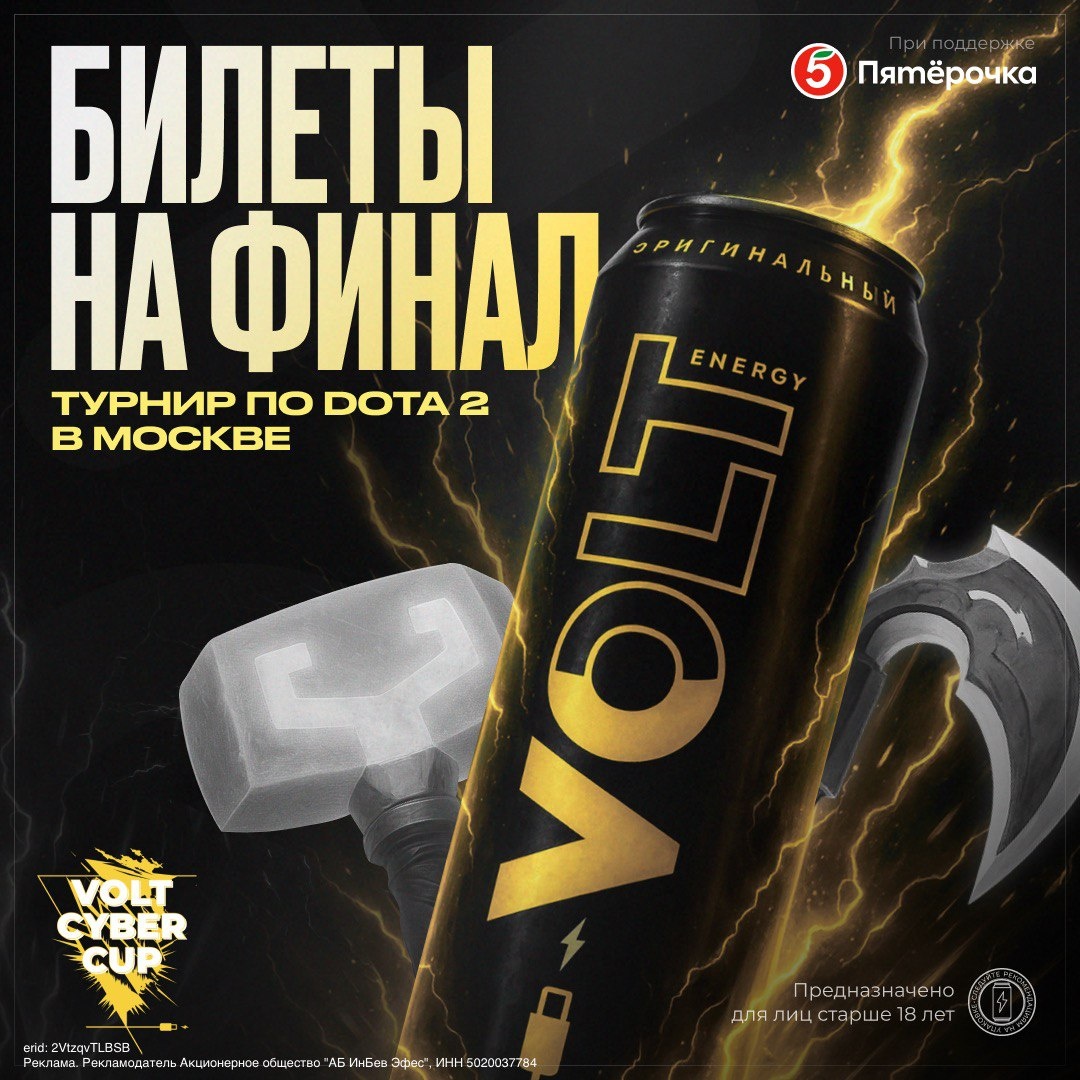 ⚡ Разыгрываем билеты на LAN-турнир по Dota 2 VOLT Energy при поддержке «Пятёрочки» проведут гранд-финал турнира VOLT CYBER CUP с призовым фондом в 3 250 000 ₽. Комментировать финал на VK Play будет VooDooSh и это еще не все Тебя ждет: Автограф-сессия Крутой косплей Бесплатный снек-бар от VOLT Energy и «Пятёрочки» Игровая зона и турнир 1x1 для зрителей А теперь главное: разыгрываем 100 билетов формата 1+1 в cообществе COLIZEUM в VK! Тебе нужно: ✔️ на COLIZEUM VK ✔️Лайкнуть пост с конкурсом и оставить под ним комментарий «ХОЧУ НА VOLT CYBER CUP» Итоги будут опубликованы в cообществе COLIZEUM в VK 16.09. Увидимся на VK Play Arena 20 сентября 🎉 Смотри трансляцию LAN-финала на канале VooDooSh 18+ CtrlAltDelights- подписаться