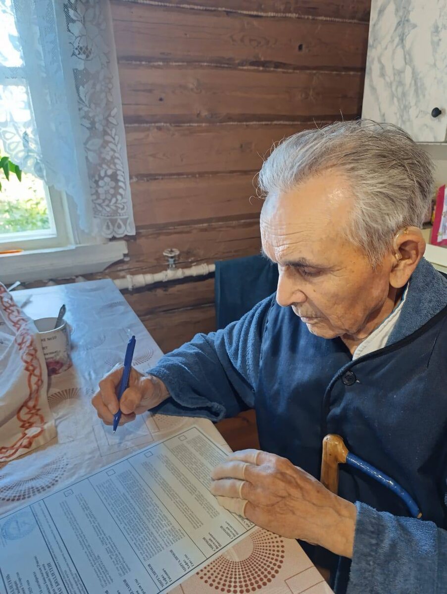 Балтач бистәсендә яшәүче районның бердәнбер Бөек Ватан сугышы ветераны Гыйльван Гыйльмуллин сайлауда катнашып, лаеклы кандидатка үзенең