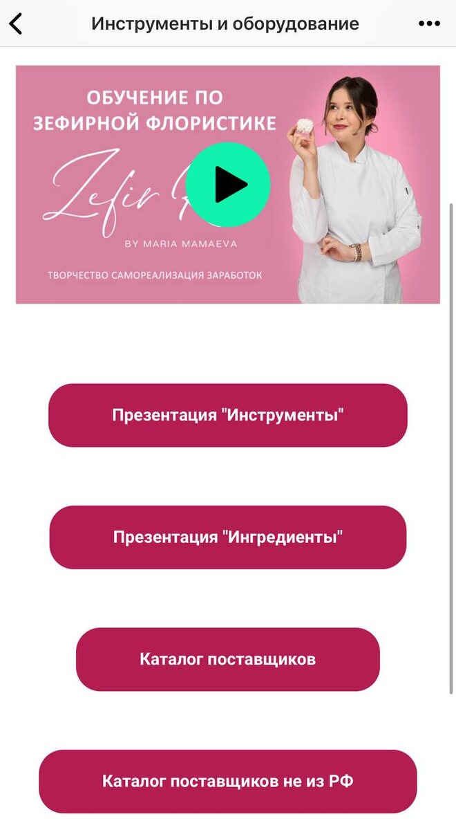 🌸"Здравствуйте, доступ к курсу бессрочный?" Нет Для тарифа с обратной связью и тариф с МУ - 12 месяцев (до 1.10.26) Для тарифа без обратной связи - 6 месяцев (до 1.04.26) 🌸"Подскажите, миксер с какими минимальными требованиями будет нужен?" Мой любимый вопрос, не нужно бежать и покупать миксер! При покупке обучения, у вас сразу открывается модуль по подготовке. Там есть все, какой миксер выбрать, какие лопатки, какой сахар и т.д. Милые, прошу, сейчас покупать ничего не нужно. Вся вся информация есть в модуле "ПОДГОТОВКА", открывается сразу после покупки. 🌸"Какая стоимость курса?" Для тех кто в предзаписи - самый выгодный тариф, смотрите почту (папку спам и рассылки), действует до сегодня 23:59 Основные продажи - набор уже открыт, вы можете ознакомиться с тарифами на официальном сайте обучения zefir.moscow/zefirflori... 🌸"Какой необходимый инвентарь нужен для обучения?" Зефиру много не нужно, это высокомаржинальный продукт. Все подробности в модуле по подготовке. Там ко