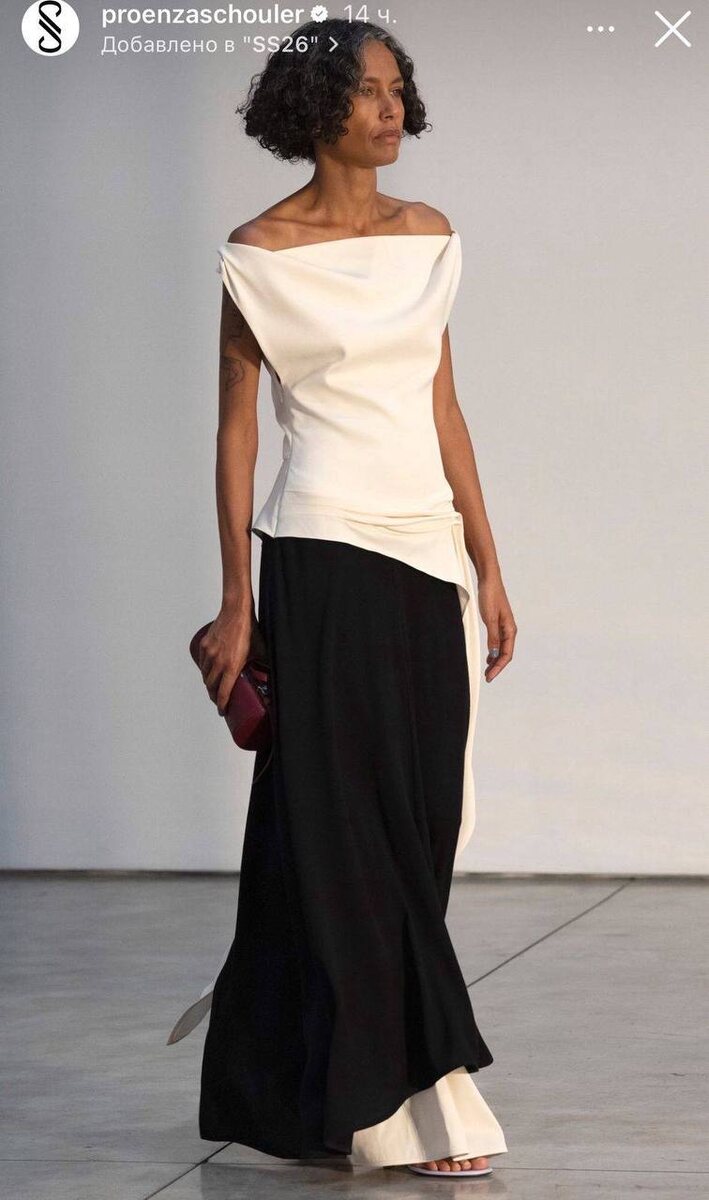 Коллекция SS26 от Proenza Schouler — невероятно красиво! Дебют нового креативного директора Рэйчел Скотт получился впечатляющим: особенно понравились акценты в виде необработанных линий лацканов и игра с изнаночной стороной ткани.