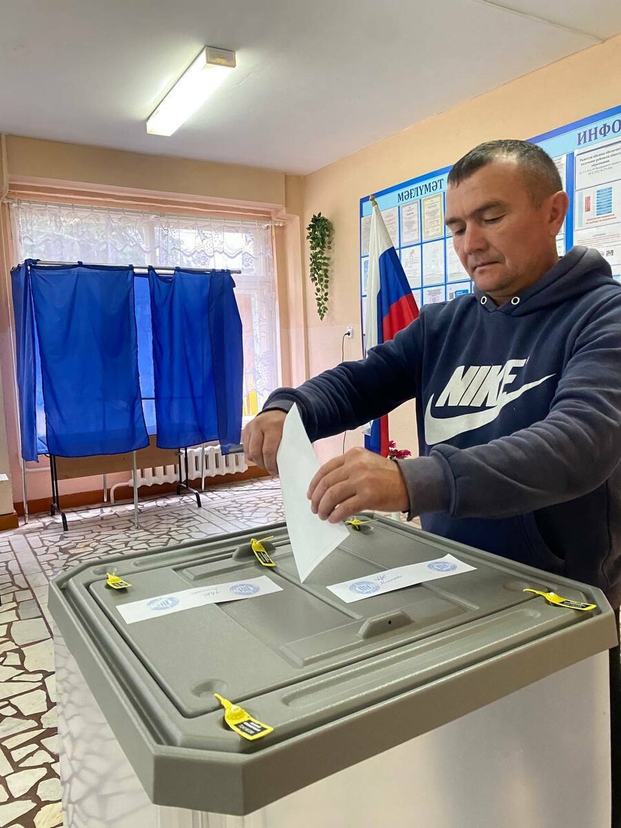 Сразу после завершения своего дежурства, когда усталость еще не успела взять верх, участковый уполномоченный местной полиции Руслан Гарифуллин пришел на избирательный участок, расположенный в школе с. Благовещенка. Его появление здесь – не просто формальность, а осознанный шаг, продиктованный глубоким чувством гражданского долга. "Для меня является долгом участвовать в выборах", – поделился Руслан Гарифуллин, подчеркивая важность этого процесса для каждого гражданина. "Из двух кандидатов в депутаты выбрал самого достойного, ответственного, радеющего за свою малую родину", – отметил он. Фото Ирины Курковой.
