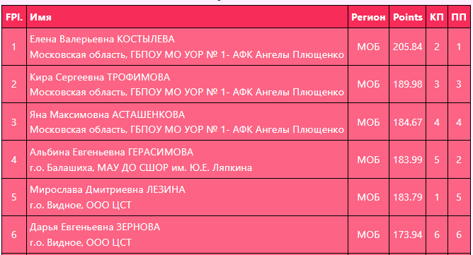 Девушки (КМС) (Итоговое положение)