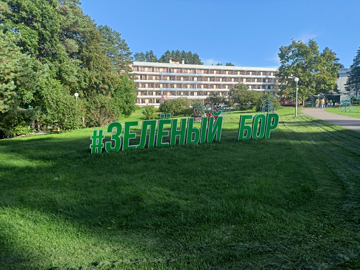 Хочу поделиться отзывов о посещении пансионата "Зелёный бор". Местонахождение: Ленинградская область, Лужский район, посёлок Пансионат Зелёный бор. Находится в 140 км от Санкт-Петербурга. В данном месте я побывала на форуме "Ладога". Но посмотрев территорию, подумала, что хорошо было бы вернуться сюда для отдыха. Очень красиво, много зелени, цветов. Кругом - сосновый бор. Воздух просто замечательный. По территории растут грибы и ягоды. Много детских площадок. Предоставляются велосипеды и ролики, палки для скандинавской ходьбы. Есть пляж с катамаранами. Для отдыхающих имеется несколько корпусов для размещения. Ремонт достаточно свежий. Удобства в номере: душ,туалет, холодильник. Питание по системе "Шведский стол". Достаточно всё вкусно и разнообразно: рыба, мясо,и овощи, супы, фрукты,выпечка,каши и т.д. Для отдыхающих в прайсе предсавлены услуги оздоровительного характера: массаж, грязевые ванны, услуги косметолога, есть бассейн. Перечень очень большой. Понравилось ли мне данно