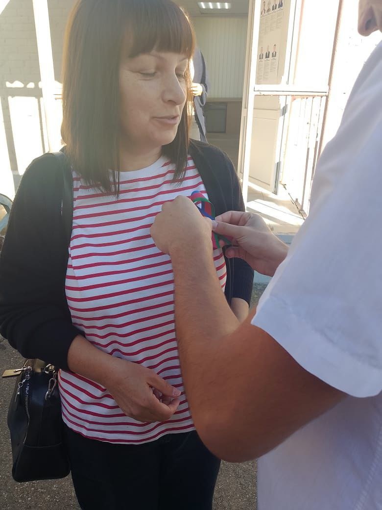 В Новокубанске волонтеры молодёжного центра сегодня вновь дежурят у избирательных участков, вручая прохожим и избирателям ленты в цветах