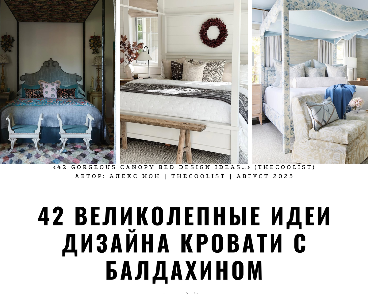 В статье представлены 42 идеи оформления кроватей с балдахином. Вот ключевые направления: