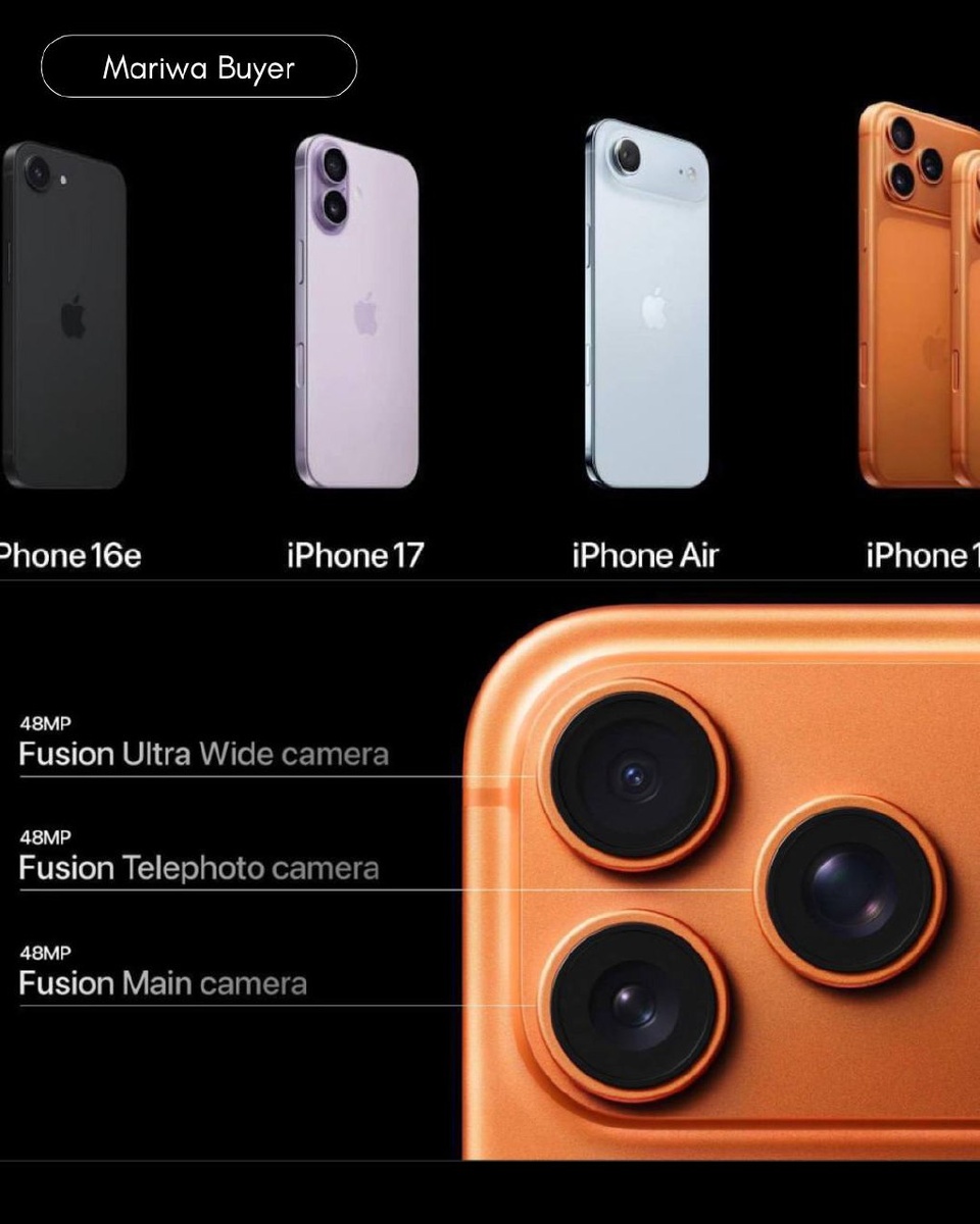 😉 Новый iPhone 17 уже в продаже! 🌟ТОТ САМЫЙ МОМЕНТ, которого ждали целый год 🤩 Apple представила свежую линейку, и теперь у вас есть возможность заказать новинки с доставкой в Россию всего за 4–7 дней! 🥺 Новые iPhone 17 🌟 Pro / Pro Max – новый дизайн, до 39 ч работы, 3×48 МП камеры + 8х зум, видео 8K. 🌟 Air – ультратонкий (5,6 мм), зарядка 100% за 10 мин, камера 48 МП. 🌟 17 (база) – дисплей 120 Гц, Always-On, камера 48+12 МП, быстрая зарядка. 📲 Все модели выкупаем только в официальном магазине Apple ☎️ Подходят для использования в любой стране (E-sim + физическая SIM) 📱 Цены указаны уже с доставкой до Москвы 😍 В продаже с 19 сентября 🤩 Доставка в Россию: 4–7 дней А вы уже выбрали себе модель?😏 🔎 Наши каталоги 📂 Условия ➡️ Связь с нами