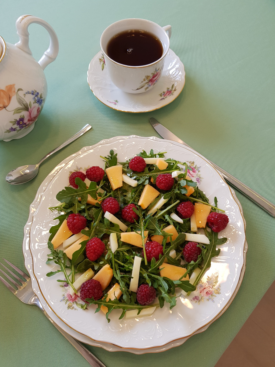 Добрый день, дорогие друзья! Сегодня в Сибири еще тепло, и я хочу предложить вам приготовить легкий салат с малиной, дыней и рукколой. Нежный сливочный вкус добавит ему сыр скаморца.