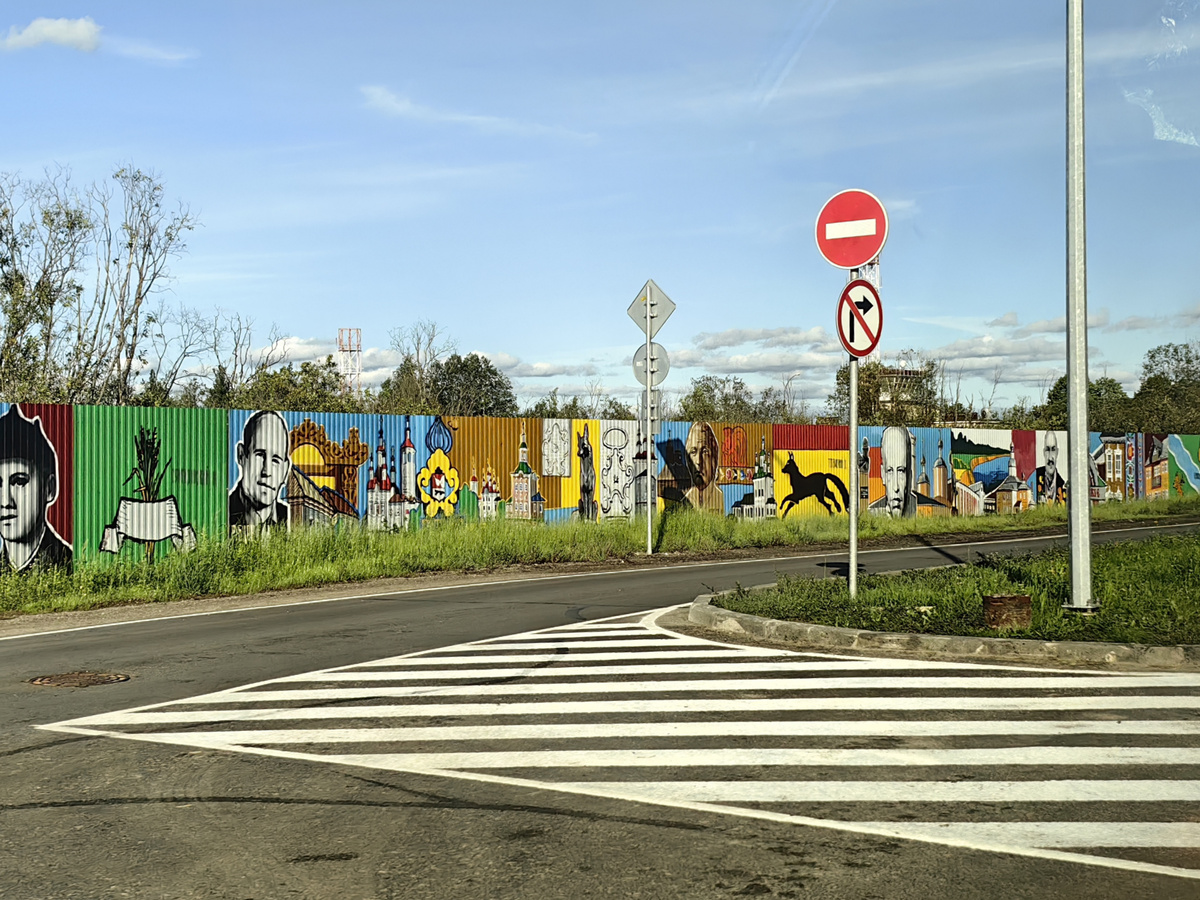 Вы когда-нибудь видели достопримечательность длиной 600 метров? Я видела! Прямо у аэропорта Вологды тянется, возможно, самый длинный и точно самый содержательный забор в стране. Это не просто граффити, а настоящий музей под открытым небом, который вместо скучных стен рассказывает яркие истории. Сама идея просто супер. Украсили скучный строительный забор, превратив его в одну из ярких достопримечательностей. Находится это возле аэропорта Вологды. Длина граффити почти 600 метров. Год назад вологодский художник Олег Иванов по просьбе вологодских дорожников, которые занимались благоустройством подъездных путей к аэропорту в рамках его обновления, украсил скучный строительный забор такими рисунками. Основная идея заключается в том, чтобы вологжане и гости города могли в нестандартном формате узнавать интересные факты о его истории и значимых личностях. Художник выбрал для своей работы особый стиль. Получилась одновременно единая картина, и в то же время каждый кусочек, посвя