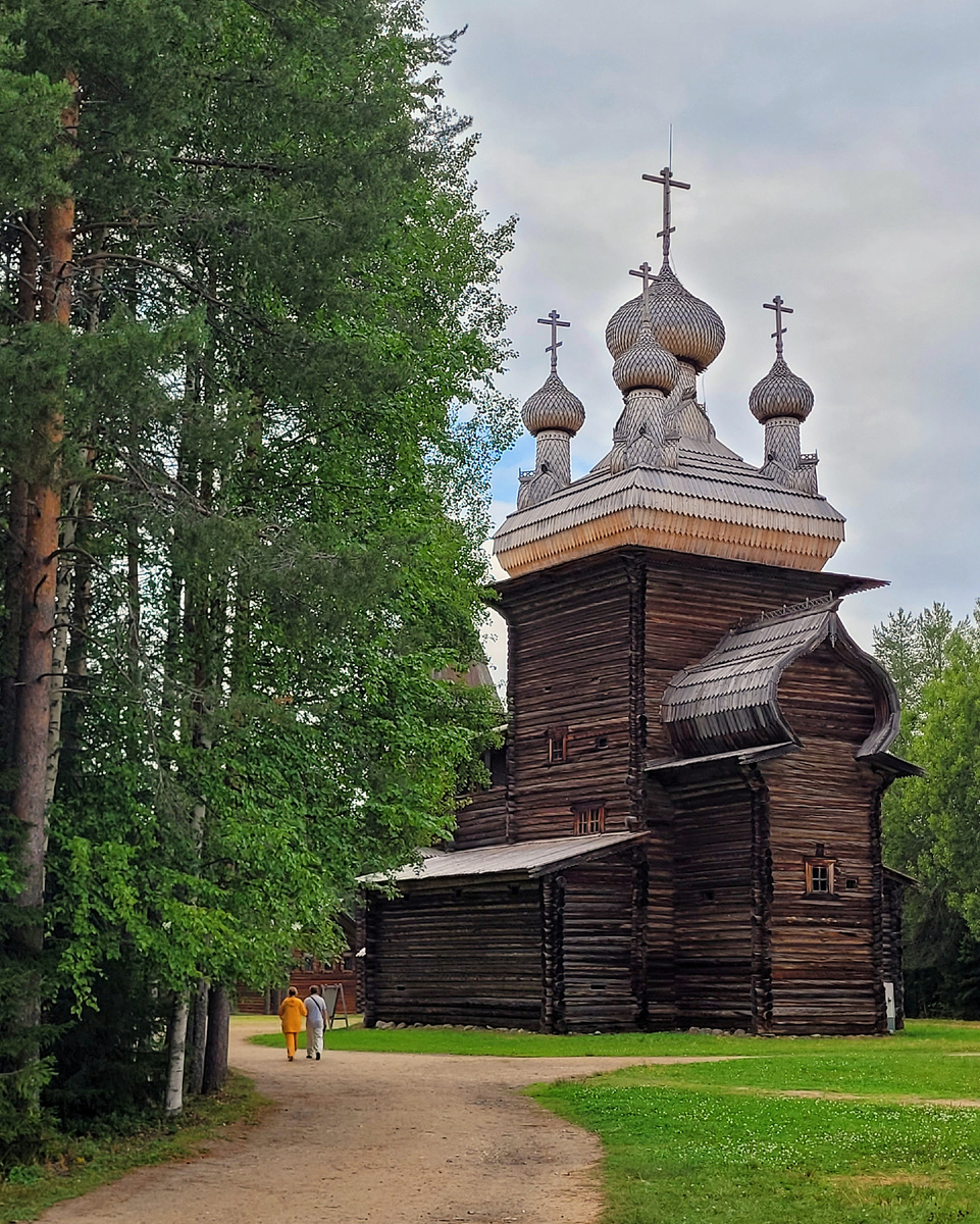 В окрестностях столицы Архангельской области мы посетили два места. Оба прекрасных и весьма известных. Первое — парк «Малые Корелы». Да, через О, несмотря на то, что находится в деревне Малые Карелы))) Букву заменили специально — для исторического соответствия поморскими говорам. ...деревянного зодчества немножко братья-близнецы. Вроде бы те же самые старинные избы, мельницы, амбары, но если разобраться, конечно, нет. Тут свои северные фишки. Расписные небеса, домовая роспись, и вот эта крутая придумка, когда под одной крышей и хозяйственные, и жилые помещения. ...или снегопад можно вообще никуда не выходить — покормить кур и подоить коров, не выходя из дома. Красота же. Ну и масштаб. В «Малых Корелах» больше 100 исторических деревянных построек, свезённых сюда со всей Архангельской области и в зависимости от района поделённых на четыре сектора. ...Каргопольско-Онежский и Пинежский. Ходить не переходить. И всё очень красиво вписано в ландшафт — залюбуешься. Мы ещё случайно попали на пр