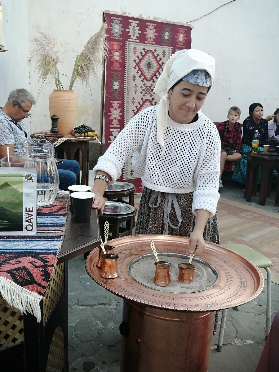 Старый город в Евпатории.Хороший,познавательный маршрут для прогулок! Старейший храм Святого Николая. Рядом -мечеть Джума-Джуми. Видимо,популярна,но вход по расписанию и в черном облачении У нас уже есть любимые объекты,например ,эта старая дверь! А это-Турецкая баня-памятник Османской архитектуры 16 века. В прошлый раз мы увидели,как растет инжир и виноград,в этот-хурма. Слышим музыку и знакомые песенки.Сплошная милота! А дальше-самое интересное-фестивальные островки.Рукодельные лавки и прилавки с кофе разных сортов Традиционно разные танцевальные коллективы выступают . Можно посетить мастер-класс Понаблюдали немного,как готовят кофе на песке . Спасибо организаторам фестиваля за прекрасные фотозоны. Пройдя ворота,отправляемся,пока не стемнело ,прогуляться по набережной Терешковой .Свежо и штормовой ветер! Друзья,благодарим за подписку на наш канал!Все фотографии авторские! И обязательно напишите,какой кофе любите вы?)