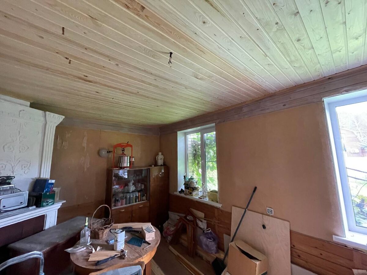 В эти выходные – возможно, последние теплые в этом году – мы успели доделать потолочный плинтус в гостиной, а еще загрунтовать старые доски под ним и заполнить кладочной смесью швы печной кладки.