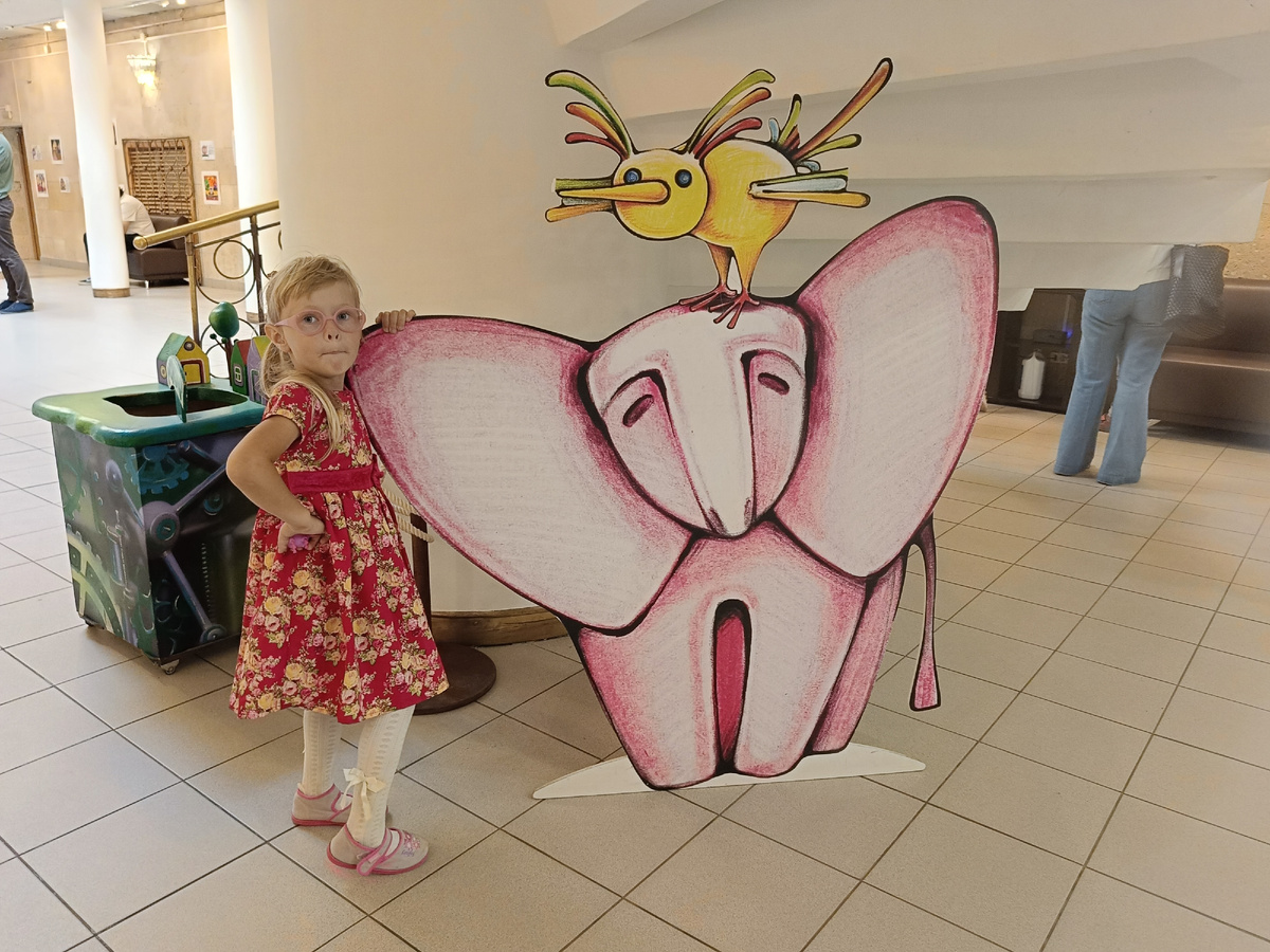 На стенах висели рисунки детей, посвященные разным театрам. Дочка заставила меня прочитать название каждой и какого возраста автор рисунка. А меня, честно говоря, весьма удивило - неужели и правда 5-6летние дети так могут рисовать? У дочки-то одни кривенькие домики да солнышки пока получаются 🤣.