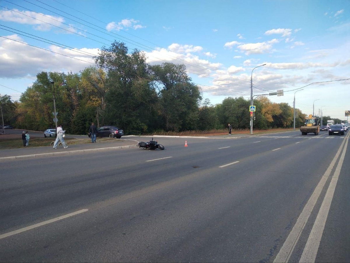 В Оренбурге автомобиль и мотоцикл столкнулись на Нежинском шоссе