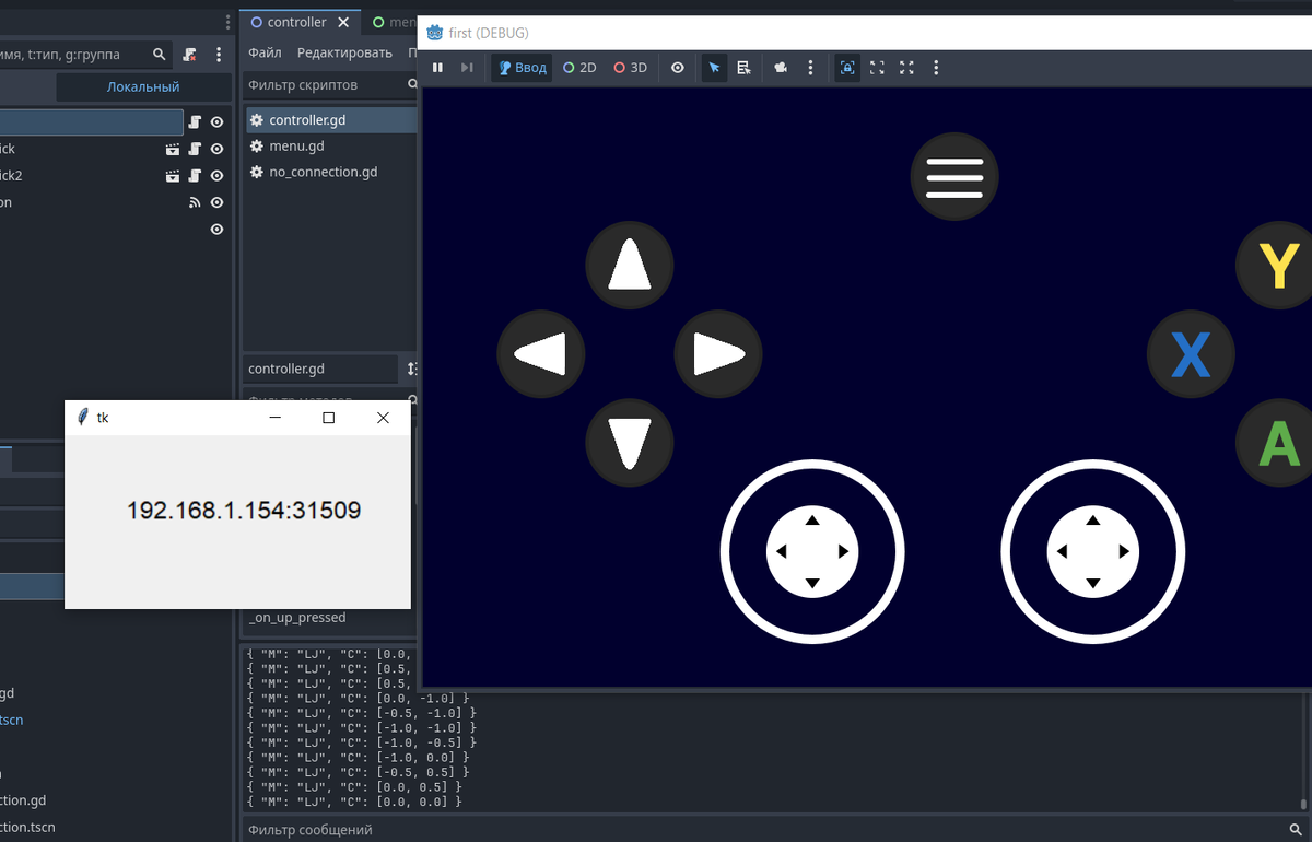 Чтож, вот и финал. Спустя клиента на Godot, который может отправлять данные о нажатия, нужен сервер - для приема и отправки на ViGem. Итак, серверная часть. Тут не так и много магии, как могло бы показаться. Так как способ отправки данных из прошлой части имеет нюанс - Json объект может отправляться кусками, то на сервере мы его собираем: строки 105, 130-134. То есть собираем данные пока не получим символ } - конец объекта. Функции left_joystick_float, right_joystick_float, press_button и release_button встроены в библиотеку vgamepad, которую можно спокойно установить через pip. И все. Сервер принимает данные, смотрит какая метка в j_data['M']: Остальные данные это координаты стика или же конкретная кнопка. Дальше данные передаются драйверу. На этом магия кончается. Написание такого рода материала для меня хороший способ поднять мою ленивую жэпу и поделать какие-то дела, напрячь мозг хоть немного. Ещё так удобно закреплять знания в голове. Для меня сплошные плюсы, а вам... может узна