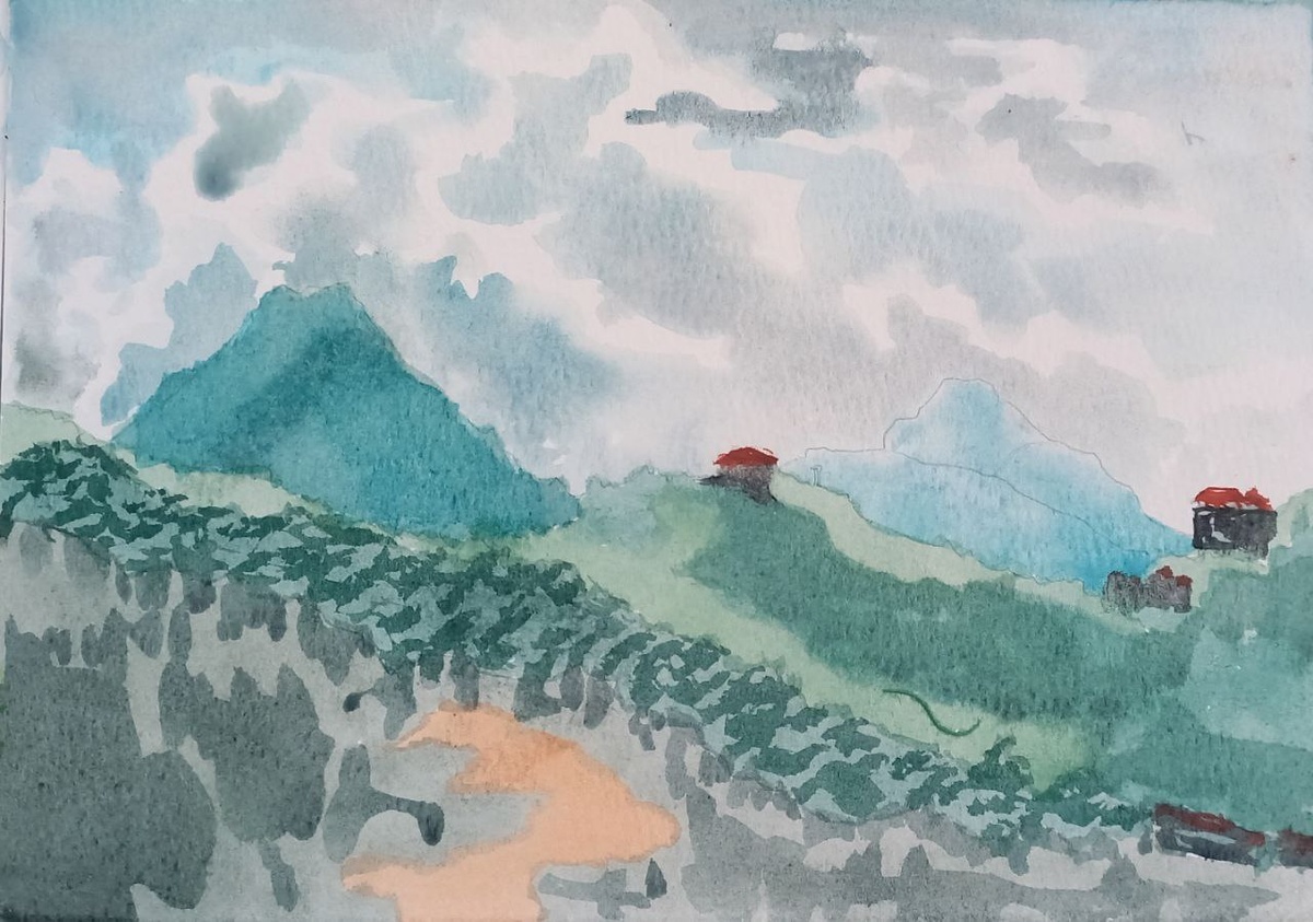 Пару книг-скетчбуков карандашом уже изрисованы(в далёких до2020х годах), хотя уже и забыл многое.. а вот с красками акварельными я ещё не прокачивал скилл, так что.. Ещё один вид из хомстея в Сапе, Вьетнам, акварелями. Рисовые поля здесь и высота около 1500м, несколько дней уже облачно и туманы. #акварель #сапа #вьетнам #азия #watercolors #рисунок #картина #пейзаж #набросок #sketch #sketcheveryday #painting #paintingart #скилл