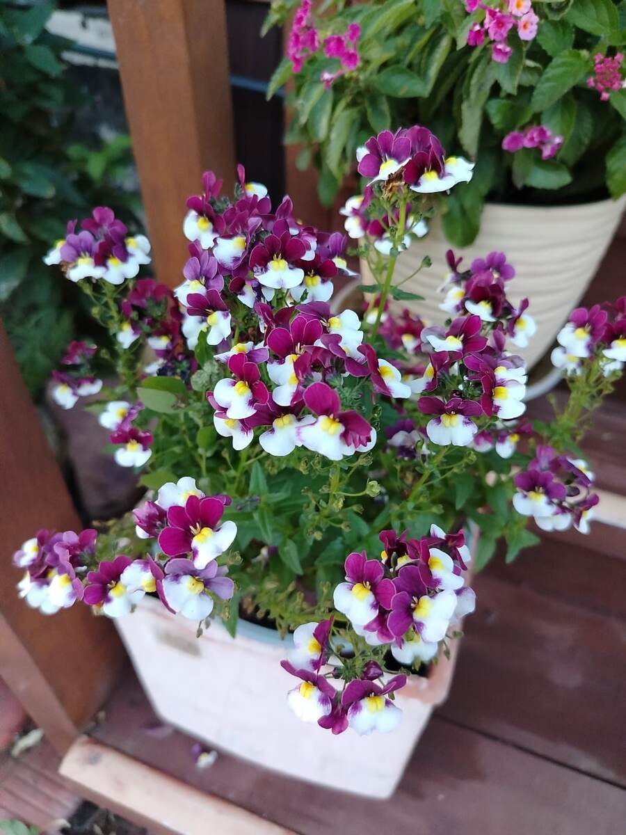 Мне немезия очень нравится, она такая яркая, сочная, и цветёт непрерывно. Красивой шапочкой цветет.