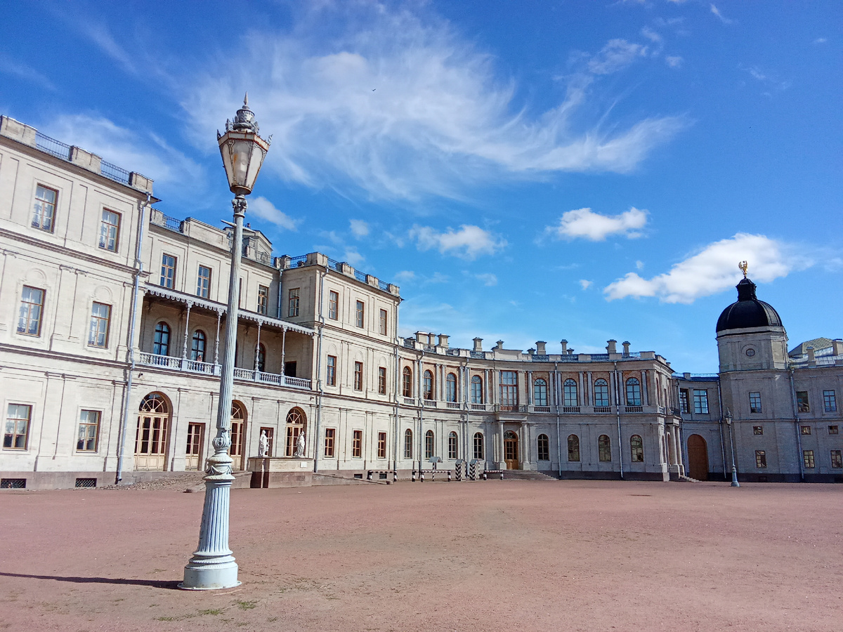 Годами ездили мимо Гатчинского дворца по дороге на дачу и ни разу его не посетили. Наконец-то, спланировали поездку и все таки решили его посмотреть в будний день На кольцевой автодороге мы попали в жуткую пробку длиной пять километров, в которой потеряли час времени и изрядно устали. Маршрут только по кольцевой дороге по пути на дачу включает около 40 км, а потом еще по Киевскому шоссе и по поселениям 60 км На парковке напротив дворца свободное место для нашего авто нашлось Билеты купили в кассе дворца и пошли смотреть интерьеры. 600 р- стоимость билета на посещение Друзья, избавлю вас от длительного исторического экскурса и подробного описания интерьеров дворца. Расположение залов и помещений расположено так, что мы раза по три пересекли в разных направлениях несколько парадных залов, будуары, гостиные и у меня уже голова пошла кругом... О дворце кратко из википедии... Дворец строился с 1766 по 1781 годы. В 1765 году Екатерина Вторая выкупила Гатчинскую мызу (будущий город Гатчина)