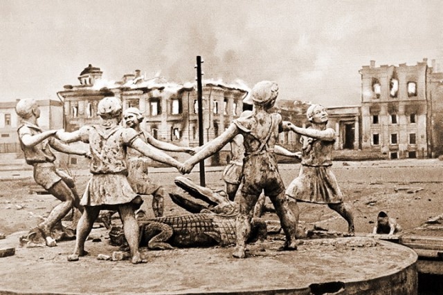 Фонтан "Детский хоровод" на Привокзальной площади Сталинграда. Фото Эммануила Евзерихина.