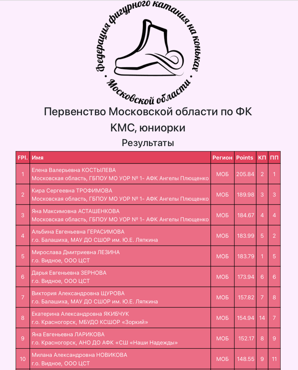 В академии «Ангелы Плющенко» для юниорок подошло к концу Первенство Московской области.