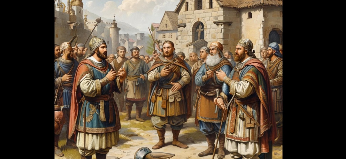 Заря едва окрасила небо нежнейшими оттенками розового и жемчужного цвета, словно художник тонкой кистью прикоснулся к полотну горизонта. Туман мягко стелился над бескрайними полями, скрывая тайну рассвета и обещание нового дня. Лес тихо шелестел листвой, приветствуя первых путников, чьи шаги нарушали утреннюю тишину. Из глубины веков поднимается образ древней Руси — могучего края, полного легенд и сказаний. Величественные храмы устремлялись своими куполами к небу, сияли золотом среди зелёных просторов полей и тёмных лесов. Здесь жили богатыри и мудрецы, здесь звучала волынка да гусли, вдохновляя народ своей мелодией на великие дела. На широких улицах городов текла жизнь простая и ясная: ремесленники трудились над своим искусством, мастера-кузнецы выковали мечи, способные победить любого врага, гончары создавали сосуды, наполненные духом природы и красоты. Возле домов белели берёзы, напоённые ароматами трав и цветов, дарили прохладу утомленным людям. А вечером собирались стар и м