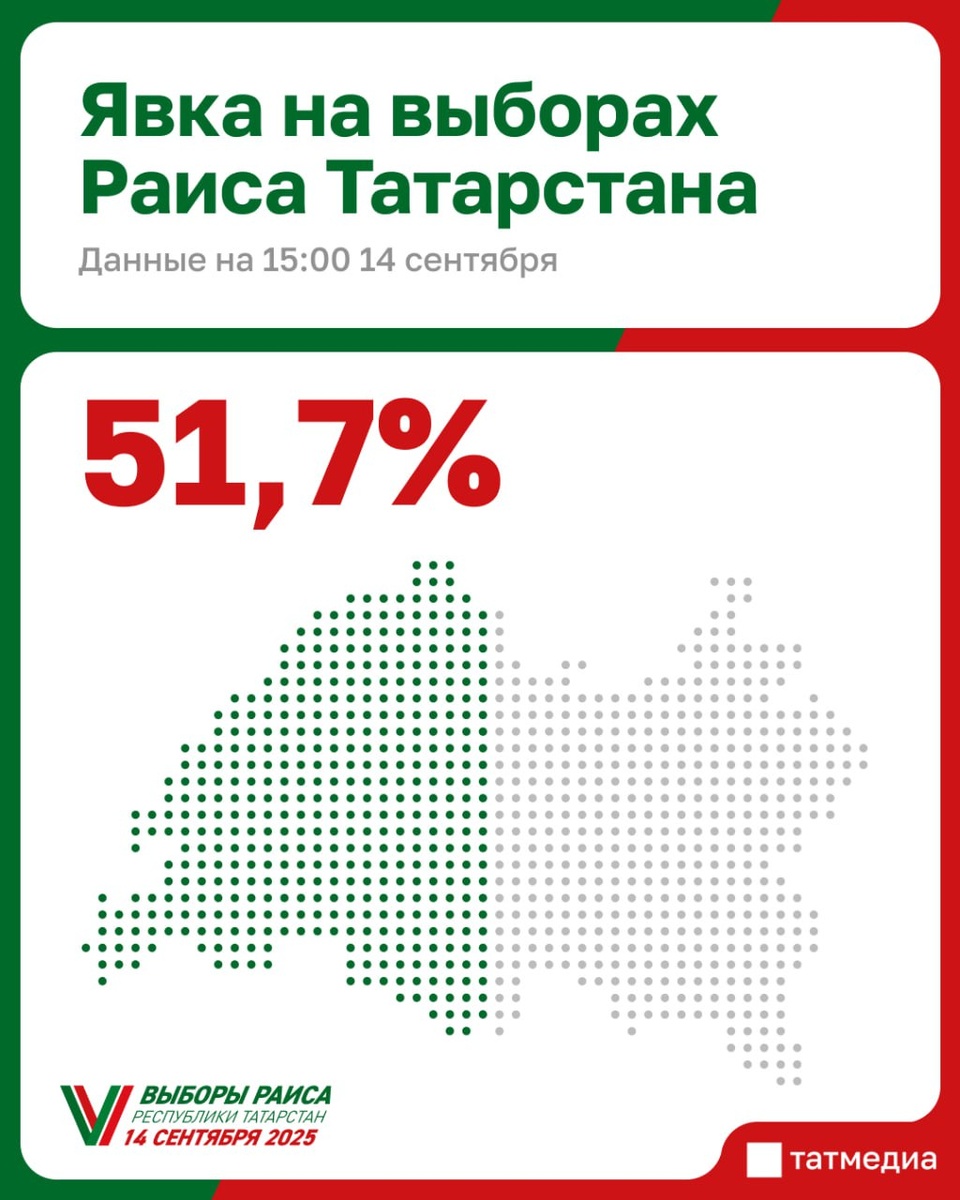 В ответ на пост 🗳✅На 15:00 в Татарстане проголосовало 51,7% от общего числа избирателей @tatmediaofficial | Все каналы Татмедиа ™️ 1-й новостной MAX-канал Татарстана - подпишитесь.