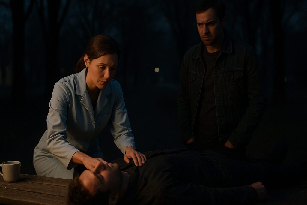 — Тише, не разговаривайте. Дышите ровно, скорая уже едет, — успокоила его Елена.