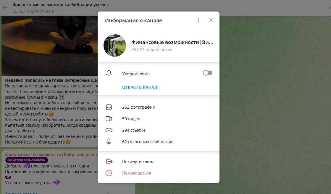 Канал с красивым названием «Финансовые возможности | Вибрации успеха» обещает стремительный рост доходов и полное избавление от долгов. Автор проекта, Валерия, подаёт себя как опытного трейдера с многолетней практикой.