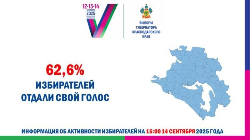 Избирательная комиссия Краснодарского края опубликовала данные активности избирателей в третий день голосования. По информации Крайизбиркома на 15 часов 14 сентября на избирательных участках Кубани проголосовали 62,6% избирателей края. Сегодня проходит последний день голосования. Проголосовать можно на своем избирательном участке до 20:00. Как ранее сообщал ЯСНО, всего голосованием на Кубани завершаются 76 выборных кампаний, из которых главной являются выборы главы региона - губернатора. Подошли к своему итогу и 36 выборных кампаний депутатов городов, районов и округов. В частности своих представителей выбирают жители Краснодара, Сочи, Анапы, Новороссийска, Горячего Ключа, Армавира. Выбирают глав жители 37 сельских поселений, проходят довыборы депутатов в двух муниципалитетах.