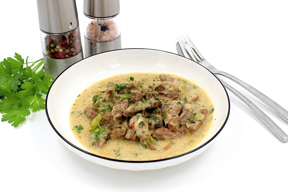 Смесь перцев – 0.5 ч.л. Рецепт: Подготовить все ингредиенты для бефстроганова со сметаной.