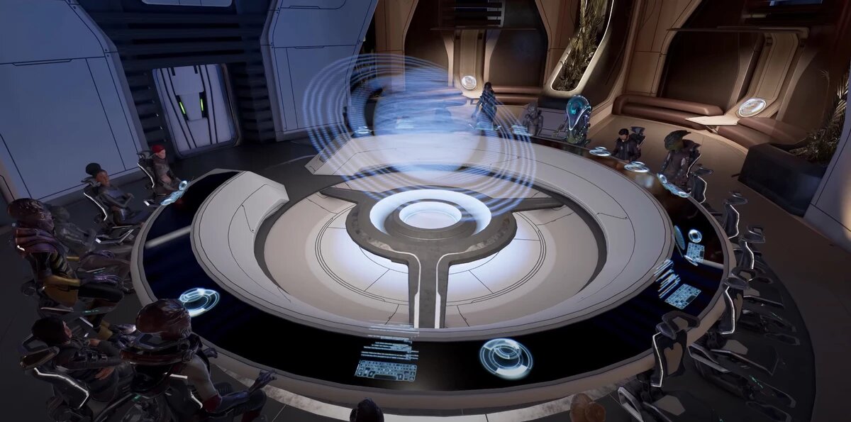 Комната Посольства становится новым центром дипломатической активности в штабе игрока. Она позволяет быстро взаимодействовать с представителями всех фракций галактики. Доступ к ней открывается через исследования.