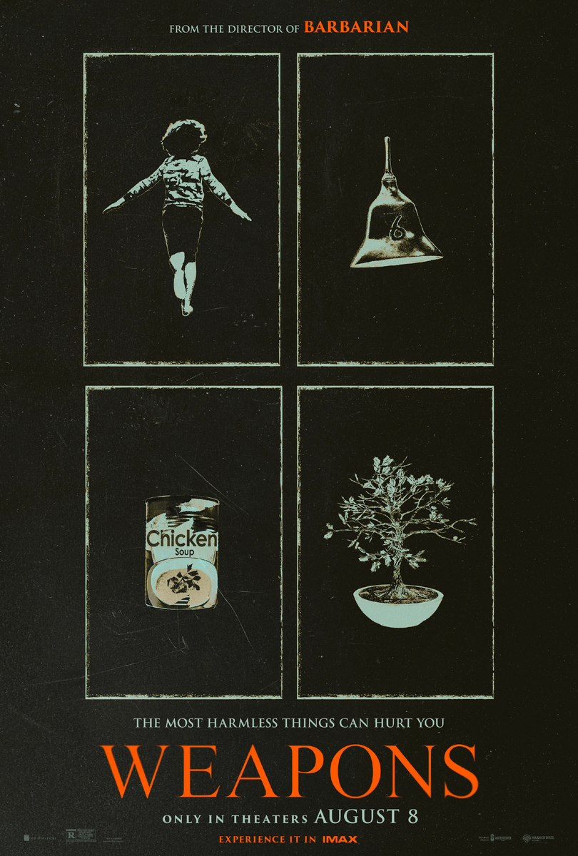 Давно не смотрела фильмы, а тут хватило коротенького описания, чтобы меня заинтересовала одна картина. Называется "Орудия", год 2025. В небольшом американском городке ночью в одно и то же время из домов пропадают дети класса начальной школы. Все, кроме одного ребёнка. Событие вызывает множество вопросов и ещё больше беспокойств, особенно со стороны родителей. На камерах видеонаблюдения в нескольких домах видно, как дети выходят и бегут в неизвестном направлении в странной позе. История подаётся порционно, разбиваясь на части, соответствующие главным героям. Сначала мы смотрим на ситуацию глазами учительницы пропавшего класса, потом глазами отца одного из пропавших детей, потом полицейского, потом местного бездомного, потом директора школы, а потом единственного мальчика, который не исчез. С каждым разом события охватывает всё больший период времени. А ещё одна и та же история отличается деталями в зависимости от взгляда конкретного героя. За это ставлю плюс. Кстати, подобный подход бол
