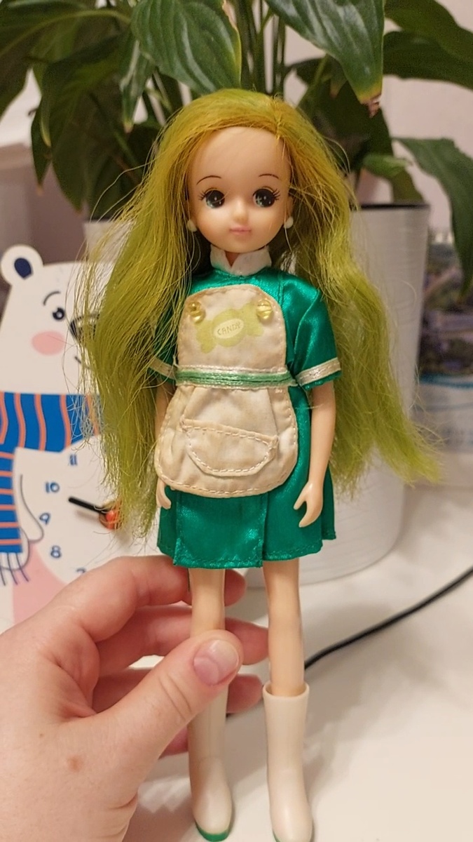 Знаю ,что многие собиратели кукол не просто их коллекционируют, но и реставрируют. Частенько видела видео,как они реставрируют волосы проливая их кипятком. Честно говоря, меня эти видео повергали в шок - видя как на голову кукле льётся кипяток из чайника я очень переживала не сварится ли она 🙈. Может я просто синтементальная?😁 Ну как это можно вообще налить на голову кипятка любимой кукле? Читала, что не все волосы подходят под такую обработку. Но все же я решилась на этот " вандализм". У меня есть моя любимая зеленоволосая Такаровская Кира Тян,которая приехала ко мне очень растрепаная. У неё был сильный залом на волосах. Честно сказать, я побоялась ей лить кипяток на голову ,когда толькополучила ее. Я отмыла шевелюру ,немного подровняла кончики,пыталась как-то средствами для укладки выпрямить, но не вышло,залом никуда не делся. Тогда я просто сделала ей небольшую причёску и оставила как есть. На днях ко мне приехала длинноволосая кукла Тимотей, с волосами сильных проблем не было