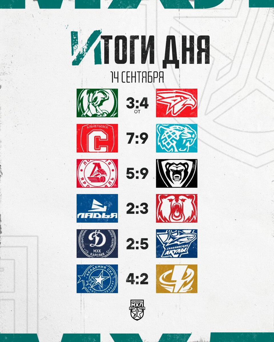 Итоги дня в МХЛ «Мамонты Югры» добыли очко в матче с «Омскими Ястребами», но остановить их победную серию не смогли. Безумный матч в Альметьевске завершился победой «Снежных Барсов», которым для этого потребовалось забросить 9 шайб, также 9 шайб забросил «Молот», но «Локо-76» смог ответить «лишь» пятью голами. 📸МХЛ @nhockey