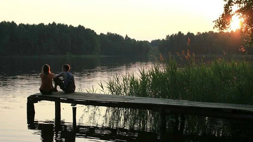 Вечер выдался хоть и душный, но очень спокойный и красочный, и озеро на фоне предзакатного неба очень красиво смотрелось и дарило настоящее умиротворение. Вода в озере оказалось тёплой, как будто её специально подогрели, и Настя легла на спину, погребла вдоль густо заросшего берега, и так глубоко о чём-то задумалась, что не заметила, как из зарослей осоки выскочил огромный лебедь, да как замахал на плывущую девушку крыльями, что она сразу завизжала и со всей мочи погребла обратно в сторону кладок. Грозный страж своего гнезда, наверное, нагнал бы испуганную девушку, но Лёша заметил происходящее и подоспел на выручку Насте, а лебедь ретировался и отстал от них.