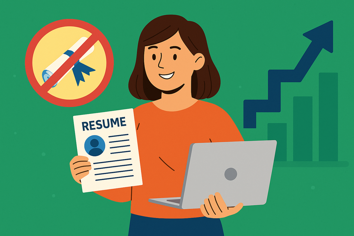 Фраза «без диплома никуда» давно устарела. Сегодня на рынке труда ценятся не бумажки, а навыки, опыт и умение быстро учиться. Многие работодатели охотно берут людей без высшего образования, если видят в них потенциал и реальную пользу для компании. Вопрос в другом — как грамотно выстроить стратегию поиска работы без диплома? Даже если у тебя нет диплома, у тебя наверняка есть: 👉 Составь список — это твой стартовый капитал. Сегодня есть десятки направлений, где важнее портфолио и навыки, чем образование: Многие работодатели сами обучают на старте — им выгоднее вложиться в мотивированного новичка. Даже без диплома ты можешь показать результаты: 👉 Портфолио говорит за тебя громче, чем диплом. Вместо долгих лет в университете можно пройти курсы: 📌 Плюс курсов: через 3–6 месяцев ты можешь устроиться на работу с реальными навыками. Не пиши: «Нет опыта и диплома».
