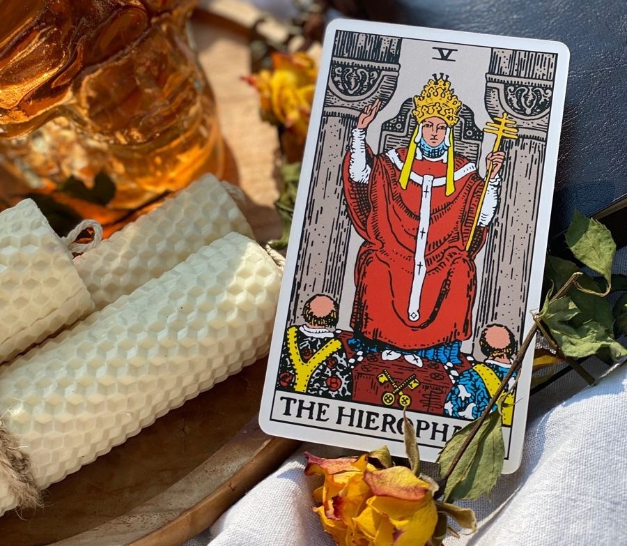 Иерофант – это пятый Старший Аркан и логичное продолжение Императора. Если Император – это порядок и законы, то Иерофант – это доступ к знаниям этих законов и традиций. Что мы видим на карте и что она означает? На карте изображен Папа Римский – фигура, олицетворяющая традиционную европейскую христианскую религию. Он сидит на троне, окруженный двумя учениками. Его главная роль – быть посредником между миром божественного и людьми, передавая знания и благодать. Иерофант – это хранитель ключей к знаниям и традициям. Иерофант — это не просто "папа", это глубокий архетип! Название "Иерофант" происходит от древнегреческого "знающий будущее", "показывающий священные вещи". Он — тот, кто приобщает жаждущих знаний к высшему миру. Мифология: Иерофант vs. Маг и Дьявол: • Иерофант (Меркурий) — передает знания, хранит традиции. Он не действует сам, а обучает других, как Морфеус в "Матрице" дает Нео знания. • Маг (Марс/Афина) — действует с помощью знаний, воплощает идеи на материальном уровне. Он а
