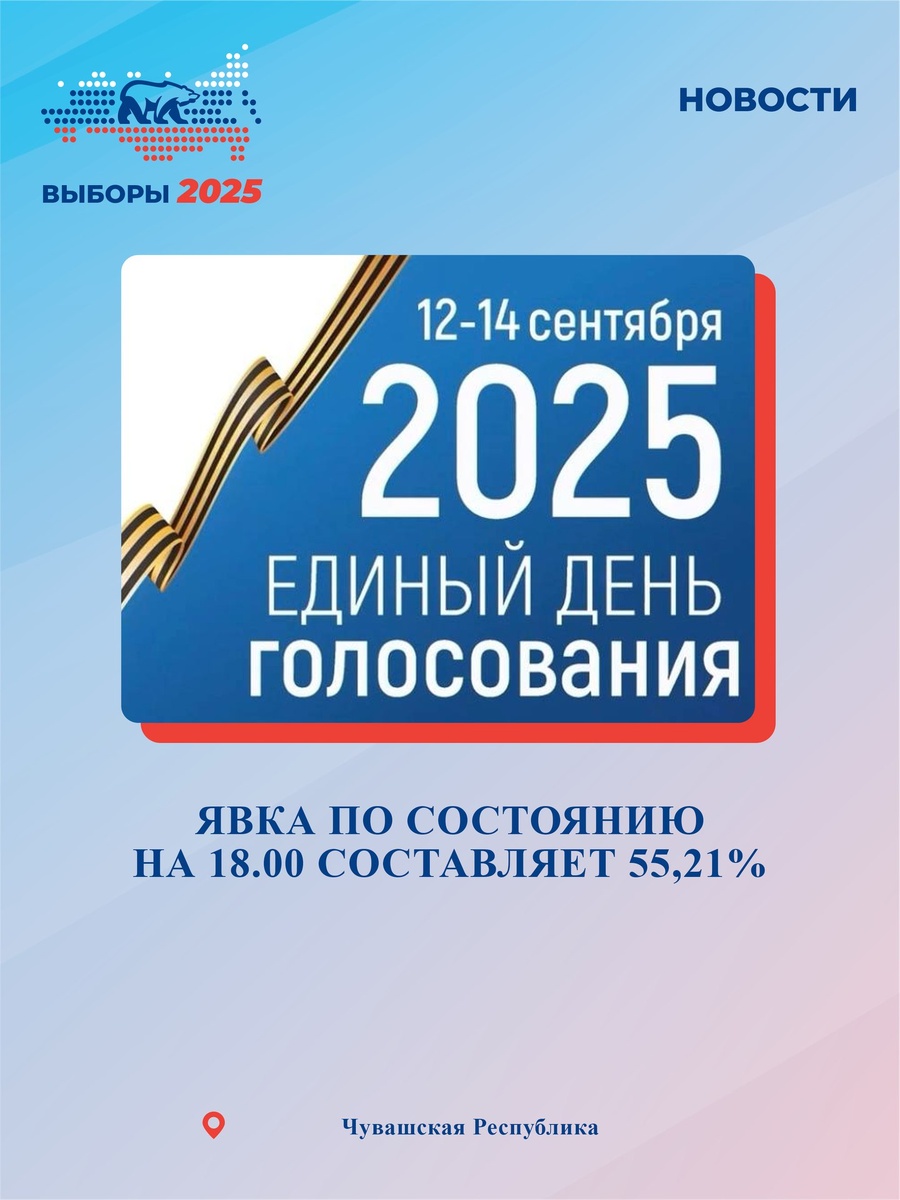 Явка избирателей в республике по состоянию на 18.00 часов 14 сентября 2025 года составляет 55,21% (501284 избирателя).