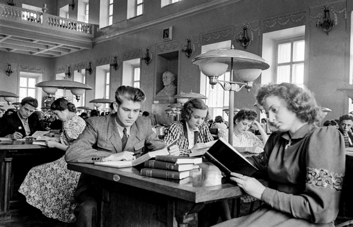 Фотография 1955 года. Современная Ленинка - Российская государственная библиотека - занимает и «главное» здание на Воздвиженке, и Дом Пашкова, и еще несколько зданий в Москве и Московской области.