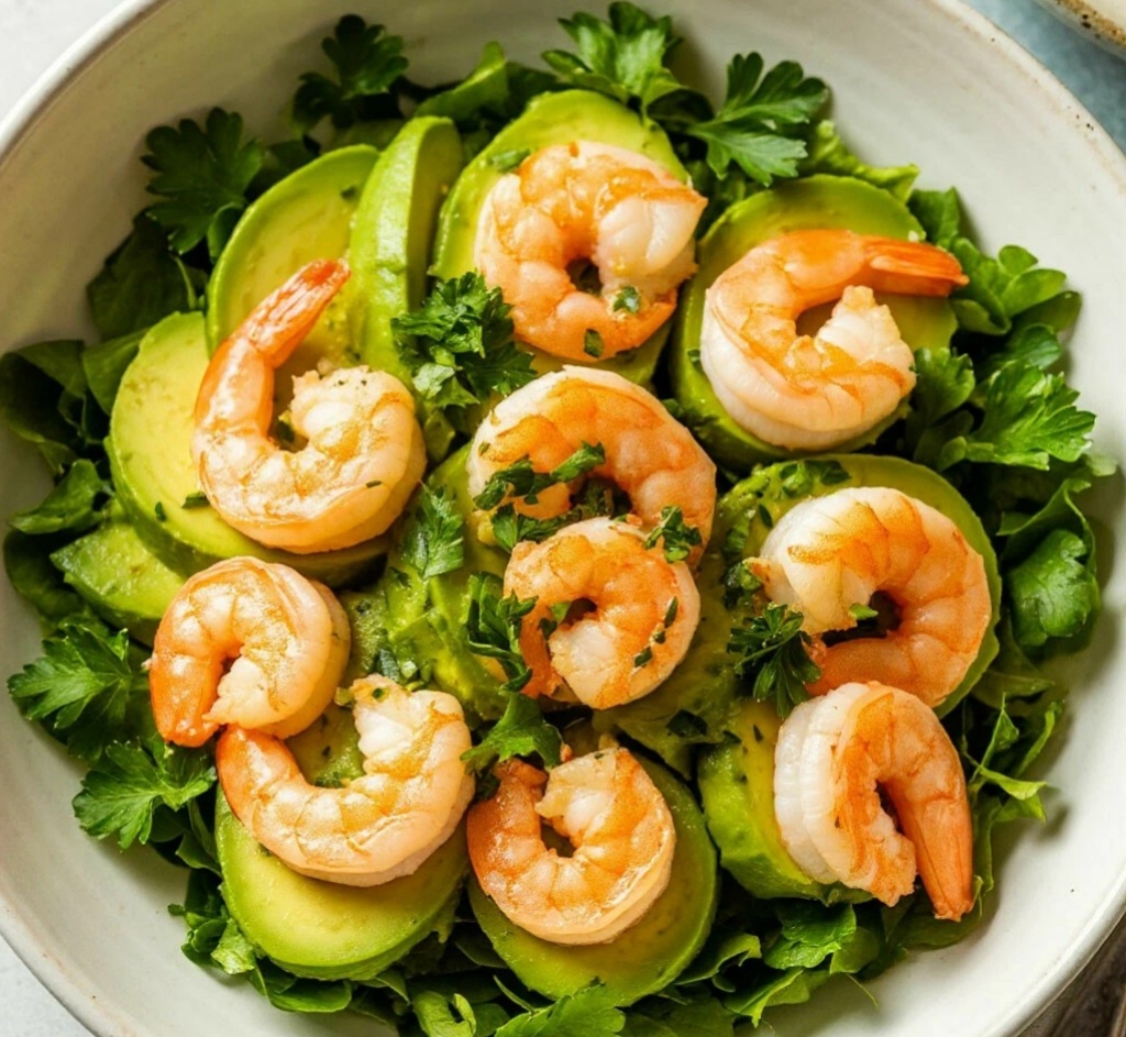Салат из авокадо с креветками Ингредиенты: - Зелёный лук (1 пучок) - Водяной кресс (1/2 стакана) - Чистый лимон (1 шт.) - Очищенные креветки (400 г) - Зрелые авокадо (2 шт.) Соус: - Уксус рапсового масла (4 ст. ложки) - Чёрный перец (по вкусу) - Сметана (2 ст. ложки) - Укроп (5-6 веточек) Инструкции: 1. Нарежьте зелёный лук и водяной кресс мелко и выложите в миску. 2. Разрежьте лимон на две половинки и выжмите сок в миску с зеленью. 3. Очистите креветки от панциря и нарежьте их на кусочки. Добавьте креветки в миску к зелени и лимонному соку. 4. Разрежьте авокадо на половинки, удалите косточку и нарежьте мякоть на кусочки. Выложите авокадо в миску к остальным ингредиентам. 5. Для соуса смешайте уксус, чёрный перец, сметану и укроп. Полейте салат соусом и хорошо перемешайте. 6. Подавайте салат из авокадо с креветками охлаждённым. Приятного аппетита!